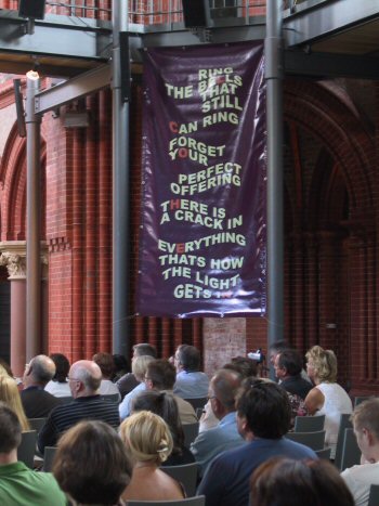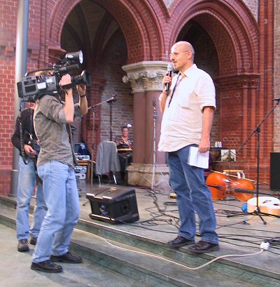 ![]() ![]() ![]() ![]() ![]() Henning Franz, leader of the organizing committee, opens The Leonard Cohen Event in Berlin 2006. ARTE TV (the European cultural channel) recorded all Friday performances. Below: Opening speech by Geoff Gompers, organizer of the previous Event in New York in 2004 ![]() ![]() ![]() Photos © Eija Arjatsalo and Christoph Franz |