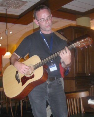 ![]() Julien Sorreau (France), Kadir Ercan (Germany) and Jurica Staresincic (Croatia) at full fling ![]() Suzanne Cras (France) and her unforgettable rendition of "Un Canadien Errant" - Don Cummer (Ontario) on guitar
