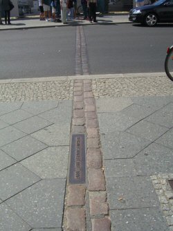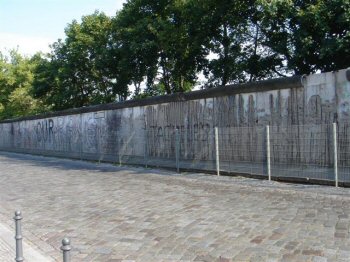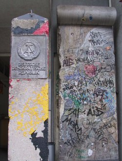 A short section of the wall has been left on its spot, and some fragments are near Checkpoint Charlie