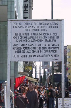 Checkpoint Charlie is now a memorial of the post-war and cold war time when Berlin was divided |