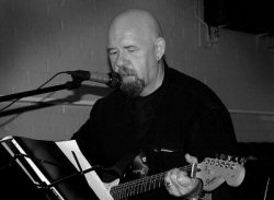 Lee was the first to play for us, after setting up the sound-system. Pete though played before too long, hardly distracted by me hovering around in front of him looking for a good camera-angle. I'd heard him sing and play before, in Leicester, so the sensitivity and excellence of his performance came as no surprise to me. Anyone who hasn't heard him yet will have a treat in store in Berlin, where he will surely play at the open-mic.
