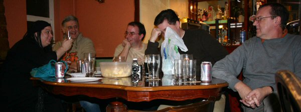 Time flew, and soon we were setting up at the venue and the others were arriving. Margaret, John (Byron), James, Tim, Rob, Pete, Linda with other half John, and Phil with Fergie, plus some of Ali and Lee's lovely friends. We all launched into conversation in the cosy manner of which Rob later described as meeting people you already know for the first time.