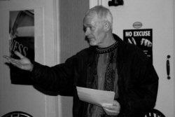 The venue was small and friendly but did come with a minor flaw. On such a freezing January night in England, there was but a one-bar gas heater for the whole room, which had a rather anaesthetising effect on one's fingers. Later, Lee treated us to another set, and then Byron joined in with Pete on the guitar. So we had almost constant entertainment, despite the harsh conditions. What heroes.