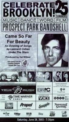 Hal Willner has spearheaded a multitude of efforts that have received high praise over the years. I am hardly an unbiased observer as my appreciation of all things Cohen colors my evaluations. Still, I could never have predicted the magnificent success of the June 28, 2003 Hal Willner production – Came So Far for Beauty, An Evening of Songs by Leonard Cohen Under the Stars, in Brooklyn’s Prospect Park.