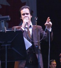 After O Canada, on tape, everybody opened with There is A War. Nick, Rufus, Martha and Teddy Thompson were in front, and the other performers were on stage in the background, getting the night off to a high flying start. Cave kept everyone jumping with I’m Your Man. Then Linda Thompson joined with Kate and Anna McGarrigle in a very tender rendering of Seems So Long Ago, Nancy. Linda continued with Story of Isaac. She then was joined by The Handsome Family in a very moving Thousands Kisses Deep.