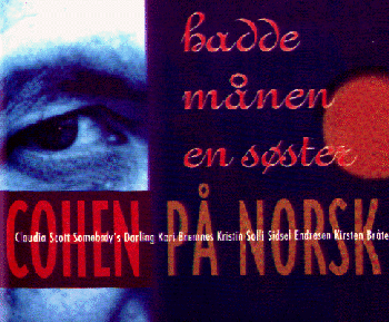 - HADDE MÅNEN EN SOSTER Norway, 1993![]() Tracks: 1. Dans meg gjennom kropp og ånd, 4:10, Somebody’s Darling (Dance me to the end of love) 2. Alle vet jo det 5:00, Kari Bremnes (Everybody knows) 3. Spurv på en snor 3:50, Kristen Bråten Berg (Bird on the wire) 4. Susanne 4:04, Kristin Solli (Suzanne) 5. Jeanne d’Arc 5:04, Claudia Scott (Jean d’Arc) 6. Barmhjertige søstre 4:03, Sidsel Endresen (Sisters of mercy) 7. Kapteinen 4:03, Somebody’s Darling (The Captain) 8. Det er krig 3:01, Claudia Scott (There is a war) 9. Gikk du noen gang fri? 4:58, Kari Bremnes (Famous blue raincoat) 10. Hvem i flammer 3:24, Kristin Solli (Who by fire) 11. På gjensyn, lille venn 5:11, Kirsten Bråten Berg (So long, Marianne) 12. Du vet hvem jeg er 3:03, Sidsel Endresen (You know who I am) Total time: 49:22. Published by Kirkelig Kulturverksted in Ascehoug, Norway. Its cataloque number is FXDC 128. Produced by Lasse Hafreager and Erik Hillestad. All translations from English by Håvard Rem. This is a marvellous collection of cover versions of Leonard’s songs - all of them in Norwegian and by famous female artists of Norway. It does not matter at all if you don’t understand the words. These versions reach the deepest meanings of Leonard’s songs. "Hadde månen en søster" means "If the moon had a sister", and comes from "The Law" in "Various Positions". The CD was released on September 21st, 1993, on Leonard’s 59th birthday. There is also a promo single (FXS 18) with "Dans meg gjennom kropp og ånd". The artists have appeared several times on the Norwegian television, especially Kari Bremnes. Musicians: CC Cowboys (Magnus Grønneberg, Trond Berg, Agne Saether and Håvard Eidsaunet). Project leaders Lars Ulseth and Tom Skjeklesaether. Somebody’s Darlings are Liz-Tove Vespestad and Tine Valand. ![]() This photo has been scanned from the cover. From left: Kristin Solli, Liz-Tove Vespestad, Tine Valand, Sidsel Endresen, Kirsten Bråten Berg, Kari Bremnes and Claudia Scott. A special limited edition book was published to promote the album. Read more! ![]() In 2017 the album was reissued on vinyl, 24 years after the CD! Also the book is still (again?) available! |