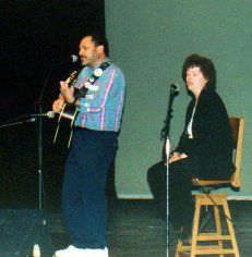 | The Open Mic session Saturday night was a tremendous success, with many friends singing and reading Leonard's work, or work inspired by him. Suzanne Holland, a blind singer born in South Africa, now living in San Francisco, was a special treat. She became the symbol of this Event with her beautiful renditions of "Suzanne", "Joan of Arc", and "Sisters of Mercy". Suzanne and her caring friend Michael Epstein were masters of all languages, being able to speak with almost every participant in his or her mother tongue (yes -- even in Finnish!)