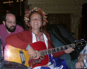 ![]() Judith Braun and Jack Lazariuk celebrating Judith's "favourite song" ![]() Suzanne Holland and her loving companion Michael Epstein (they live in San Francisco) ![]() Robert Bower, New York, Leonard's archivist ![]() Sharonne Cohen, Israel | From Judith Braun, Germany: - It is a silly attempt to try deliver these precious days' atmosphere by written word, but I'll at least try to try! 1st of all you might be wondering what it is like to finally have the gallery-photos materialize into flesh, to suddenly hear real voices instead of having the friends smile at you via lines of letters only? Just close your eyes, make up your most daring dream what it should be like, add a solid dose of undreamt surprise to your most inventive vision and you'll have ready the mere outlines of what happened. It is hard to go into details here, because one would either have to compose pages and volumes to do justice to every "Companion(ess)-of-the-Heart" we met, or it is better to leave it at that and just whisper a heartfelt "Thank-you for being you. And thank-you for having been, being - and hopefully - remaining part of my life." 2nd you might appreciate to learn about non-ng-related magicians who popped up to scatter even more golden sparkles over our anyway wonderful experience: The Montreal Metro Station Master who hospitably let pass our entire sightseeing-gang for free, once she realized that we're walking the Cohen-path. The Svede Jan Eric Lundquist who sang Cohen so beautifully that even Leonard's sister Esther sighed, that his voice was matchlessly sexy. The aforementioned lovely Lady herself of course, whom to mingle with us nobody would have dared to expect: (Either she is a shining model of courtuousness and self-control and therefore made us feel so welcome as guests in her and her little brother's home-town, or she really enjoyed our curious herd grazing the Montreal-pastures.) She sang and laughed with us, talked and listened to us and even opened Leonard's current house for us, so that we could violate the privacy of his direct neighbours, peek into sacred rooms and gather another priceless memory to take home with us. Nancy White, a singer, songwriter, comedian and Cohen-fan of most rare callibre pampering us with an unforgettable concert that fondled our hearts and split our sides with laughter. Make sure to carefully store her name in your backheads and try get hold of one of her cds/concerts: Not only is she a brilliant artist and devoted Leonard-connoisseur, but besides one of those rare, rare women who feel not afraid of being funny.! Suzanne Holland, The Fairy-Queen (a singer and fan from South-Africa), who happens to be the true incarnation of what Leonard must have had in mind when writing the song. Wrapped in rainbow and sunlight, her voice a blend of molten gold, velvet and honey, her spirit bewitching, enriching and wise. Even though she did no official concert, she sang for us for hours. Not just once, but wherever and whenever she turned up. Actually she captured my heart so totally, that I found myself dragged away in her wake so helplessly, happily and gratefully, that I'm still all occupied by relishing this new friend I made. Again: A 1000 heartbeats deep thank-you to the committee who made this possible and to all you friends for your precious real-life company. The same to Leonard for the mesmerizingly beautiful new songs he sent and for not turning up. ( - How ever should we have enjoyed our togetherness so relaxedly, how ever would we have made it to focus on each other so warmly and gratefully, had our attention been trapped by The High Unholy One only.!?). |