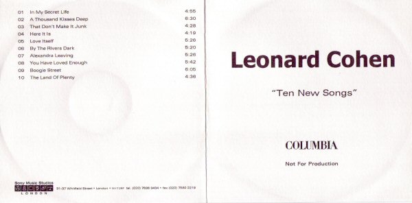 Above: UK promo CD "Not for production" made by Sony Music Studios, London. All tracks.