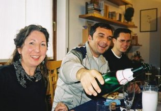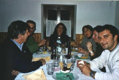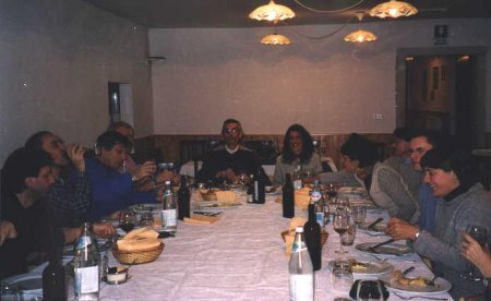 | We sat down to a delicious Italian dinner at 8.30pm, which we all enjoyed – except for Christoph, who doesn’t like mushrooms and there were a lot of them in the meal! During a break in the many courses, Lizzie read a poem which was dedicated to us from Peter Needham (from the chatroom). Grazie Peter.
