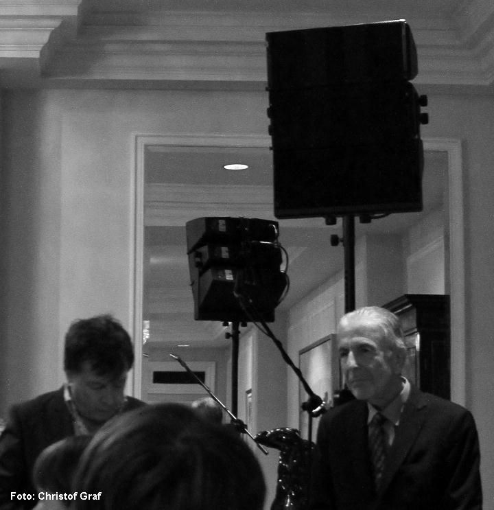 Also attending were the bosses of the record labels of the various countries represented by the interviewing journalists. There was also a record label from the UK or the USA, Cohen’s manager Robert Kory and surprising enough – Dominique Isserman, Cohen’s partner and French amour in the 80ies. She didn’t have any function on the evening of the event; she didn’t take any photographs either. She was simply present. After the 3 interviews, Cohen left the High Commission House and the 7 + 37 + 25 + 6 + (3x7) + 5 + 3 = 104 minutes in the life of Leonard Cohen went by faster than expected, yet they still linger on in unforgettable emotions.
