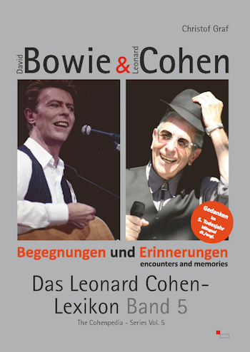 To date, more than 400 mostly unpublished photos, as well as a timeline of both artists compliment the continuation of "The Cohenpedia-Series". An essay about the art of turning mortality into music and the answer to the question, how David Bowie and Leonard Cohen musically confronted death, complete the existing Volume Nr. 5."