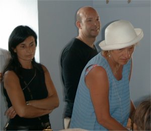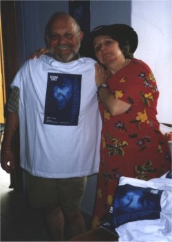 Clockwise: "This is perfect for your body" - Dolores Netbalek (Germany) selling Event T shirt to Dick Straub (New Jersey)