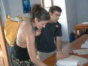 Julia Caudill (Washington) and Ulf Cronquist (Sweden) registered participants on Thursday in the Yachting Center.