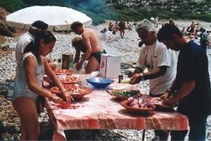 ![]() Please email Jarkko the missing names! First boat photo © Barbara Mayer Beach view and forest photos © Susan Crafts Salad photo © Andrea V Janett Dafydd and buffet table photos © Jarkko Arjatsalo Beach boys and girl photos © Eija Arjatsalo Group photo, grill photo, Andrew etc. photo and last boat photo © Kim Solez |