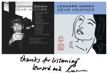 NEW YORK 2004 THE EVENT MEMENTOS Gifts from Leonard Cohen![]() "Cup of Mercy" coffee mug and Book of Mercy ![]() "Dear Heather" CD jacket Gift from Kelley Lynch![]() "Amazing Women" calendar 2005 (Amazing Card Company) Gift from Richard McGraw![]() "Her Sacred Status My Militant Needs" CD The Event Memorabilia![]() The Event Booklet (50 pages) Booklet design by Lionardo D(esign) and The Event Poster Design by Kadir Ercan