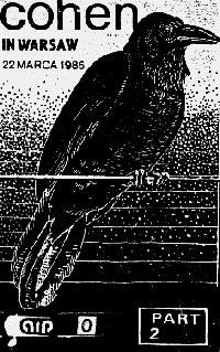by Daniel Wyszogrodzki![]() March 22, 1985, Sala Kongresowa (Congress Hall at the Palace of Culture)Leonard Cohen´s trip to Poland in 1985 was as much welcomed as it was unexpected. Not included in the original schedule for the Various Positions Tour the four March dates were added at the last minute thanks to promoter Andrzej Marzec – the first independent promoter in Poland (responsible for bringing Bob Dylan in 1994 and still active in the music business). It was a thrill for a number of reasons. First of all PRL (Polish People’s Republic, as the state was called while under a Soviet regime) was not a concertgoer’s heaven. Quite the opposite. Foreign stars of popular music did not visit our country on regular basis and the memory of The Rolling Stones show in 1967 never seemed to fade. Another important thing: it was a sad and very dark period in our contemporary history. A martial law imposed on 13th of December 1981, only a year after an outbreak of “Solidarity” (the first semi-free trade union in the Eastern Block and also a major social movement) has deepened the economical and spiritual crisis in our country and it seemed there were no realistic solutions at hand. It was generally believed the Soviet Union would invade the country – as it did in Hungary in 1956 and in Czechoslovakia in 1968 – at the first sign of a real uprising. The spirits hit the bottom. But the main reason was the artist himself. Leonard Cohen was a cult figure by that time, considered the greatest living songwriter, widely recognized and loved by the Poles as no other singer in the world. He was known to be a writer as well, although none of his works were available in Polish translations. His songs were sung with the Polish lyrics by Maciej Zembaty. I never liked his translations, but I recognize his role in making Leonard Cohen a household name in Poland. You would hear “Suzanne” at every campfire in the country. This is no place for literary analysis, but our appreciation of Leonard Cohen’s songs is easy to explain. We understood them. When he spoke about Suzanne or about Jesus we felt his lyrics sound familiar, strike familiar bells. His poetry seemed to be a distant branch of the ages old tree of European literature. We dug the metaphors. He seemed – with all his originality – not unlike our own poets. Exotic – yes. Especially in his unorthodox treatment of sex and religion. But understandable. As opposed to the “Americana” of Bob Dylan or Bruce Springsteen. All this added to the enormous interest in Leonard Cohen’s shows in Poland. There were four of them. Beside the Warsaw concert I joyfully attended (and recorded and took photographs of) there was a famous show in Wroclaw’s Hala Ludowa (Jahrhunderthalle in German) where Hitler addressed the crowds of his Nazi followers in the 30's. Leonard Cohen made a comment on that and performing in the place of such a history gave him a very spooky feeling. His latest album – “Various Positions” – came out few months before and Dance Me To The End Of Love was a major hit both on the radio and as the music video played continuously on Polish national television. Needless to say obtaining a ticket was a problem and it had nothing to do with a very high price (at the day of the show scalpers would get an equivalent of a monthly salary for a single ticket and people still considered themselves lucky to get in). In front of the SPATIF office in downtown Warsaw (a central box-office for all entertainment tickets) a line formed with a week’s advance. It was controlled by me and my friends from a car parked in front of the office day and night. Anyone interested would get a number – without it there was no way of getting inside after the tickets arrived. Mine was number 2 (because a friend I brought with me got to the door before me and signed his name first). People may still remember a very red Peugeot 305 with a cover of “Songs of Leonard Cohen” (a vinyl copy since the CDs just started to appear at that time) stuck behind a windshield – headquarters of the Unofficial Ticket Committee. More then a thousand people signed up! The communist authorities were ambivalent. The tourneé of Leonard Cohen in Poland was officially approved of – otherwise it would never happen. But it would only get the coverage from a local TV channels like Kurier Warszawski (a Warsaw Courier) in the capitol where a young blond journalist, Grazyna Bukowska, interviewed the artist every day during his visit. Unfortunately, a VHS tape of these interviews I recorded of the television, was later accidentally erased. As far as I know – and I spoke to Mrs. Bukowska recently – nothing remains in the archives. Luckily – there’s a video tape of the entire Warsaw concert itself. I remember when Mr. Cohen heard a woman filmed by a TV crew in front of Kongresowa at the day of the show confess she spent her monthly salary on a single ticket. He said she shouldn’t have done so. In the studio he seemed really disturbed and said it wasn’t worth it. Waiting for the concert was like waiting for a volcano to erupt. A funny feeling concerning how quiet and tranquil Cohen’s shows are. I knew basically what to expect. Although there was no bootleg material available and we had to be satisfied with the “Live Songs” album (quite satisfying I still say) I knew what to expect, cause I just got a tape of his Paris shows. Another thing was a friendly welcome. And here comes my “WELCOME BACK sign story”: ![]() The sign – when spread wide – said: WELCOME BACK. Neither imaginative nor appropriate, wouldn’t you say? Well, not necessarily. For the idea was to fold it. When Leonard Cohen entered the stage for the first time, we had the BACK part folded and shown only a friendly WELCOME. I swear he noticed – we had excellent seats at the first row of the amphitheater (best seats in the house, take my word on that) and the sign was huge. When Mr. C